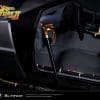 The interior of the Time Machine is recreated to match the on-screen version, featuring the Time Circuits Display, Flux Capacitor, and other LED-equipped components. Every detail, including the gear shift, genuine leather seats, and the intricate wiring both inside and outside the vehicle.