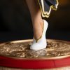 Chun-Li is posed on a low profile disc base decorated in red and gold with sculpted details modeled after the embroidered belt she wore in her first appearance in Street Fighter II.