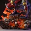 The flowing cape and banner add a dynamic feeling to the statue, perfectly framing Raoh’s image as the mighty conqueror of the wasteland. The base, designed with fiery ruins at Raoh’s feet, features smoldering skeletal remains and shattered debris, emphasizing his tyrannical dominance and the destructive power.