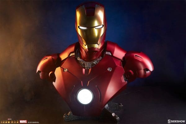 The fiberglass Iron Man Mark III Life-Size Bust also features a light-up arc reactor and eyes in the faceplate, allowing you to bring some light (and some heart) to any home display. This incredible Marvel collectible is a must-have for fans of Iron Man and the Marvel Cinematic Universe alike!
