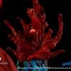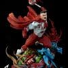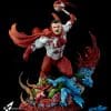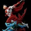 This dynamic diorama depicts the pivotal fight in the first episode of Invincible where Omni-man ambushes and kills the members of the Guardians of the Globe one-by-one. While swinging War Woman’s mace, he brutally eviscerates Aquarius. The base of the statues are the piled-up corpses of the rest of the members of the Guardians.