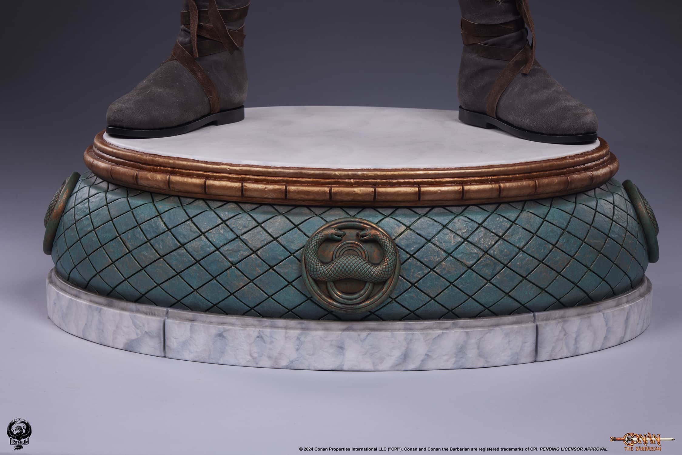 Clutching the Atlantean sword with both hands before him, every muscle in Conan’s body appears ready for the next challenge that awaits him. The beautiful paint work on the statue emphasizes the expertly sculpted musculature of this larger than life warrior. The Warpaint Edition sports a unique deco and museum style base paying homage to the fan-favorite scene in which Conan and his allies infiltrate the temple of the villainous Thulsa Doom. The stark contrast of the white and black body paint adds an even greater sense of drama to this already imposing statue. The Temple base is decorated with snake emblems and marble like finishes.