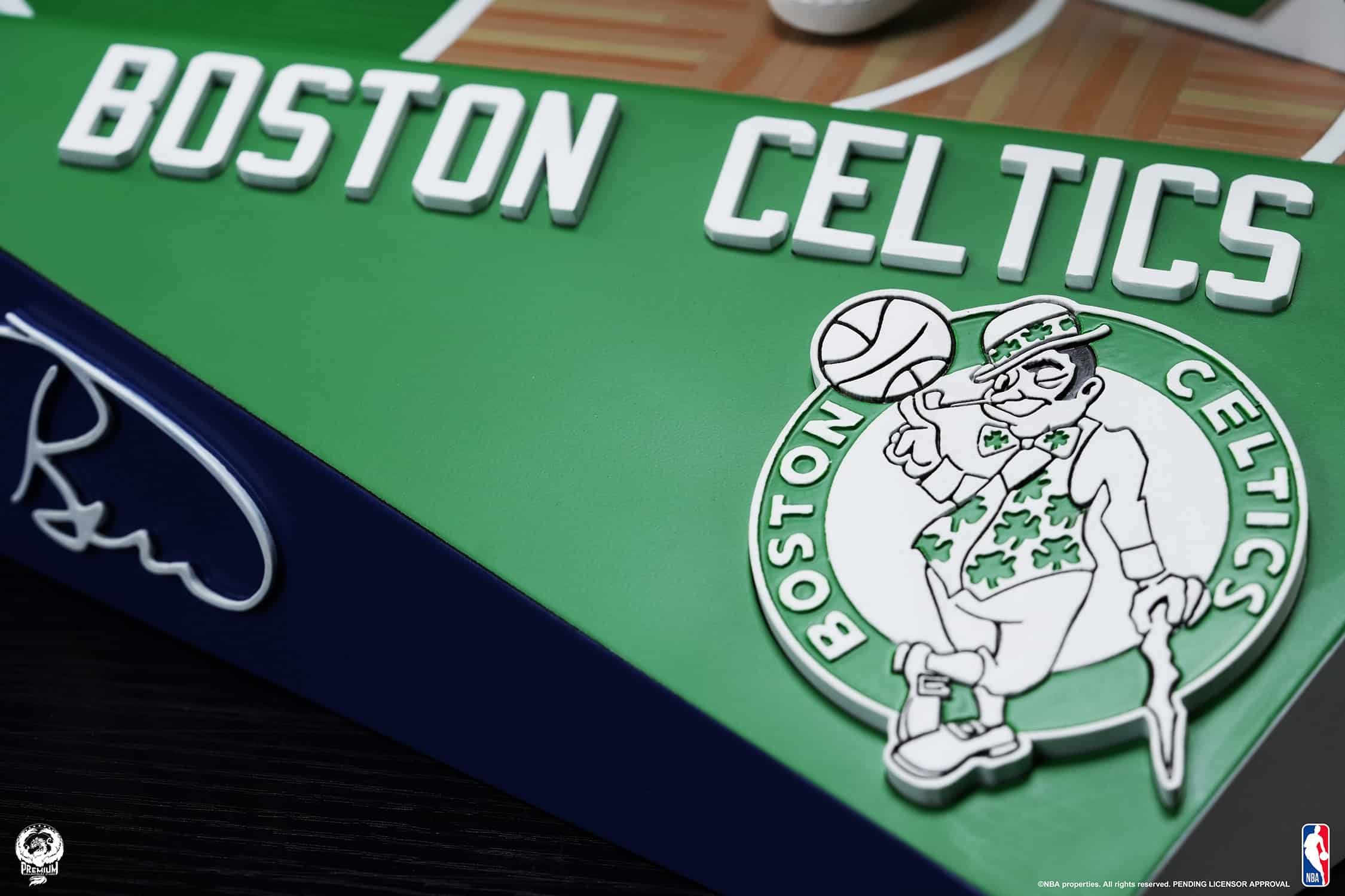 The Larry Bird 1:4 Scale Statue is an homage to Bird’s legacy with the Celtics and his influence on the industry with the Boston Celtics logo, 33 representing his jersey number, and his signature along with the NBA logo on a basketball court base. Bird is fully sculpted, featuring his iconic hair and mustache and a period accurate representation of the fan-favorite Celtics away uniform.