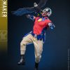 Comic Concepts and Hot Toys introduce the Peacemaker Sixth Scale Collectible Figure, meticulously crafted to reflect John Cena’s compelling portrayal. The action figure features a newly developed head sculpt with separate rolling eyeballs, plus an alternate helmeted head with two types of metallic silver electroplated helmets and two interchangeable lower-face expressions, completed with a magnetically attachable tongue. The sculpted dark brown hair, screen-accurate skin texture, and detailed facial nuances bring Peacemaker’s expressive intensity to life. Built on a muscular body with seamless-elbow silicone arms, the figure offers versatile posing options with realism.