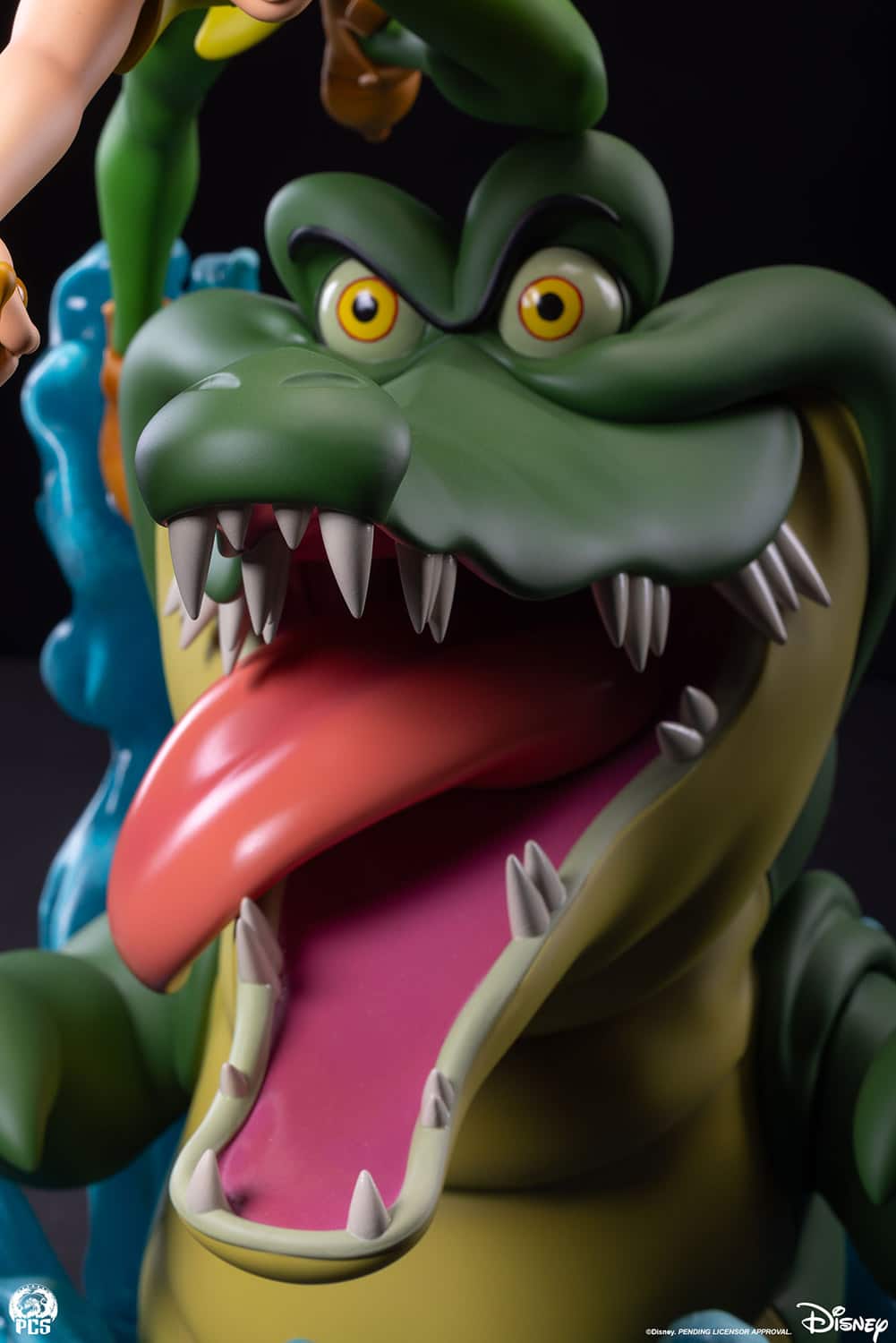 Peter is all smiles even in the face of danger as he playfully flies over the head of the massive croc bursting from the water below. This limited edition collectible is hand painted and individually numbered, and its screen accurate design is worthy of a place in any Disney fans collection.