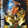 Prime 1 Studio and MegaHouse are proud to collaborate to make a long-awaited statue of the main protagonist Son Goku from Dragon Ball Z! We chose his popular Super Saiyan look in a dynamic Kamehameha Pose with an LED Light-up function which gives some vigor to the whole statue. We also added some small highly detailed parts to the base and the whole body that gives an amazing effect of a fierce battle.