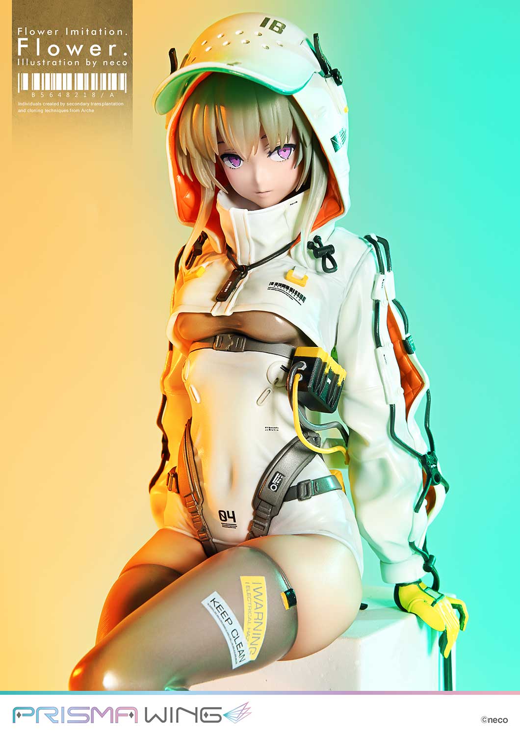 Step into a dystopian future, where emotions are shrouded by masks and hoods, and flowers bloom in botanic capsules. This extraordinary figure brings to life the original artwork of the popular illustrator, neco.