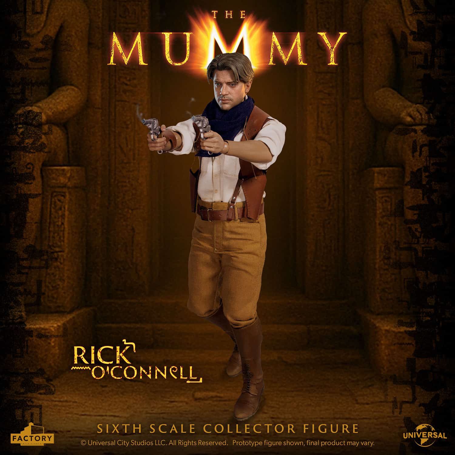 This figure presents a detailed likeness of Rick O’Connell, the daring soldier turned treasure hunter famously played by Brendan Fraser. O’Connell’s costume, from his military shirt to his khaki pants, has been perfectly recreated, along with his iconic double shoulder holster rig.