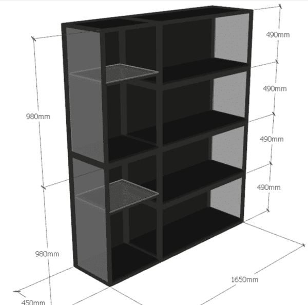 - Total external dimensions: L165 D45 H196 CM ( L65″ D17.7″ H77.2″ )