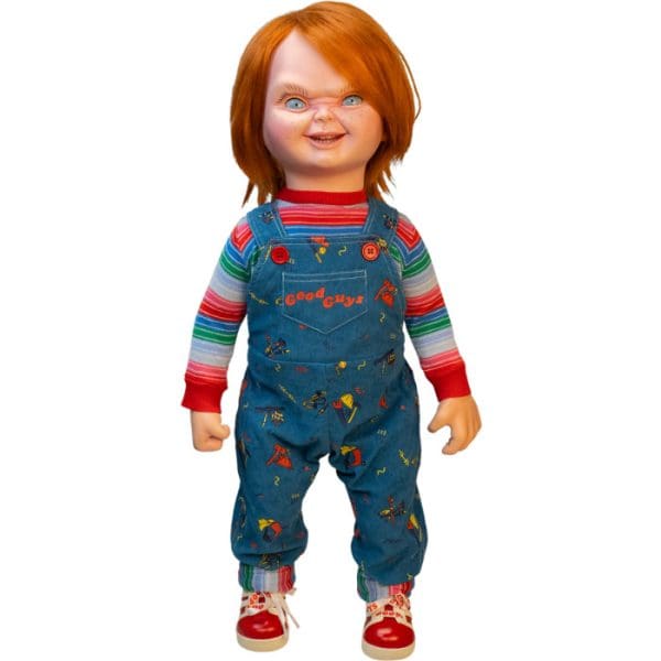 The Officially Licensed One-To-One Scale Ultimate Chucky replica is truly a must-have for any Chucky collector! This Chucky has been developed to be the ultimate collectible – offering posable eyes and the ability to change the head and hands to truly customize your display.