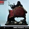 The chaise that Vampirella lounges on supports her relaxed demeanor very well. It features quilted leather, fine wooden carvings, and a large textured throw blanket. A goblet of spilled blood adorns the blanket, while a small, rising colony of bats balances her out very well. Encircling Vampirella’s fine leather boots are some venomous snakes slithering between a dozen or so human skulls. Moreover, if you order from Prime 1 Studio’s online store and authorized distributor, you will get a displayable Vampirella logo as a bonus.