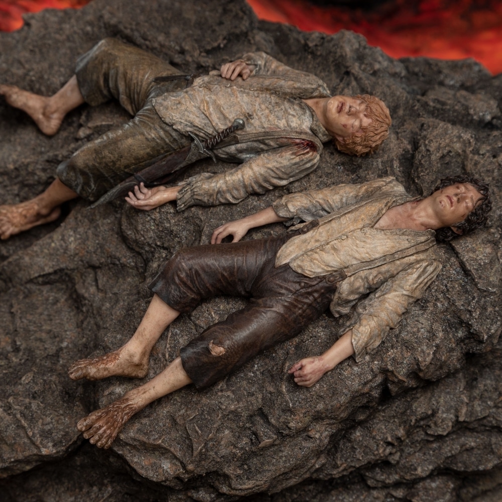 Their task complete, Frodo and Sam lie spent upon a spur of rock as Mount Doom heaves beneath them. Rivers of searing, molten rock cascade past the exhausted Hobbits, consuming their fragile island sanctuary. Victory, they have bought for Middle-earth; for their friends; and for the Shire, but at the greatest cost, as the hope they have won for the world comes by sacrificing their own.